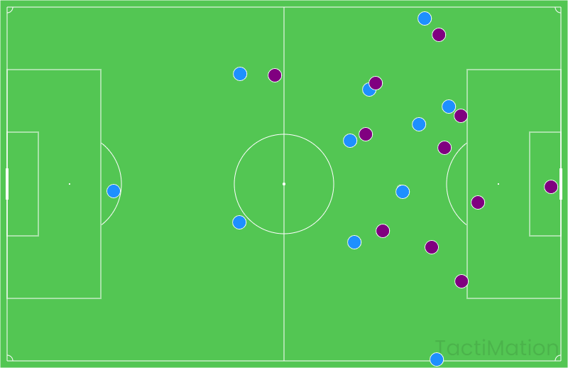 7. Nikola Vlasič stands still. And this is important because Petrovič prioritises picking Vlasic up over chasing Rice.