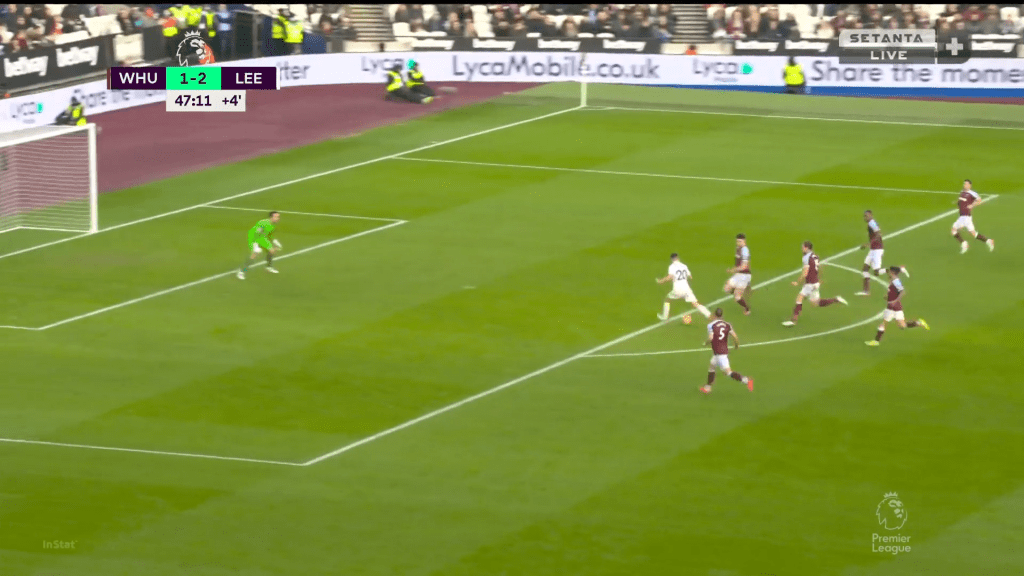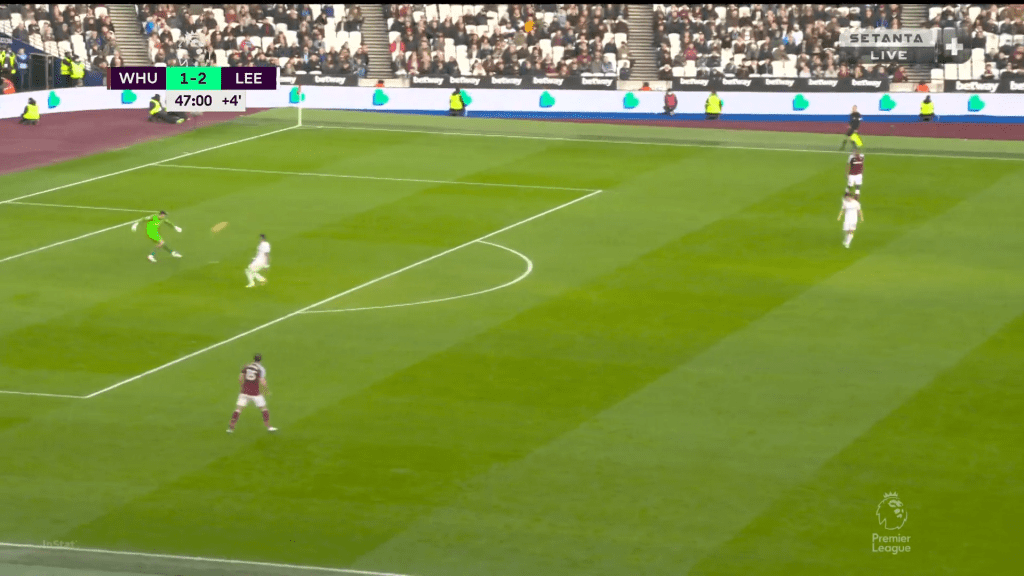 Comparing just that one instance of Aguerd’s confidence under pressure against Leicester to this series involving Issa Diop and Dawson from the 3-2 loss against Leeds should make clear the kind of difference the Moroccan can make to our build-up.